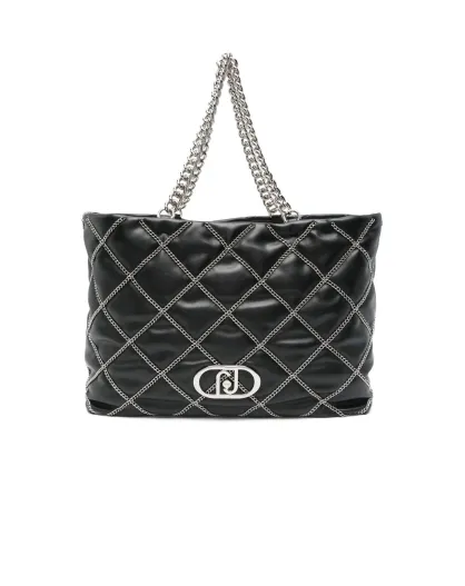 Bandolera Rebekka de piel granulada negra - 34x25x9 cm
