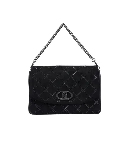 Bandolera Rebekka de piel granulada negra - 34x25x9 cm