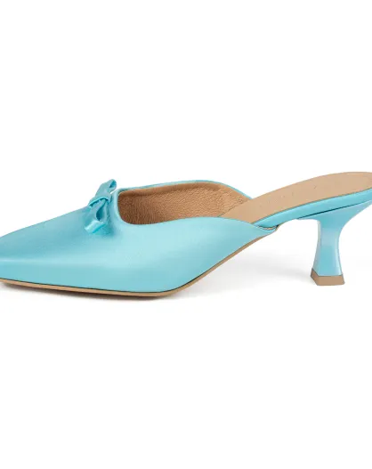 Mules Sophie de satén azul