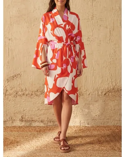 Vestido largo combinado rosa Maravoile estilo Anae de los años setenta