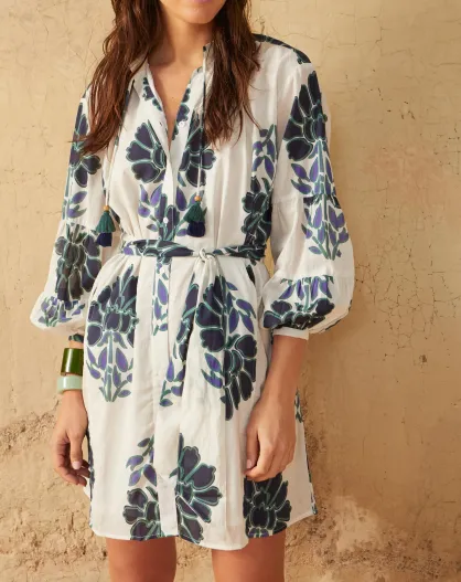 Vestido corto Charlie con flores indias Maravoile combo azul