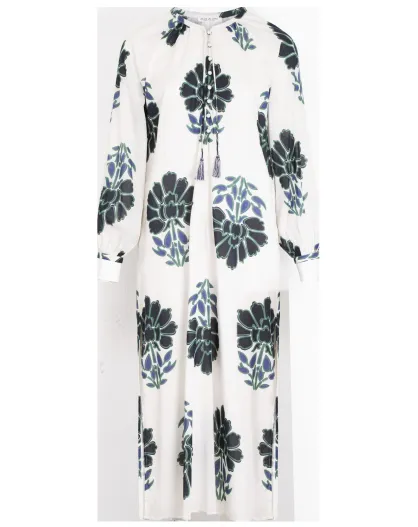 Vestido Gregoria con estampado de flores indias en un azul combinado maravoile