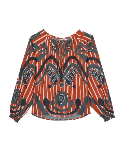 Camisa Rosie con estampado barroco en combinación de rojo maravoile
