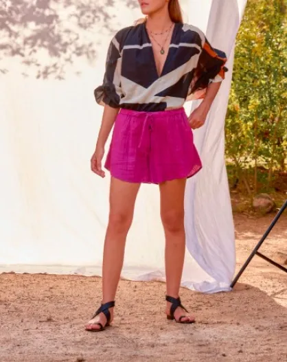 Pantalones cortos Lilou de doble gasa magenta-violeta