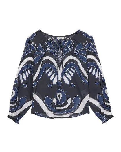 Camisa Rosie con estampado barroco en combinación negra maravoile