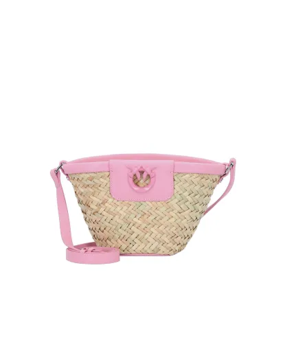 Bolsa de playa Love Summer en rafia y sedosa piel de becerro natural/rosa, 17 x 14 x 10 cm
