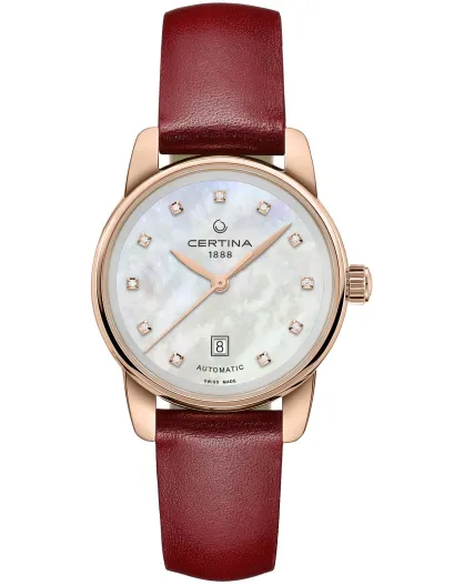 Reloj automático Certina para mujer en acero granate