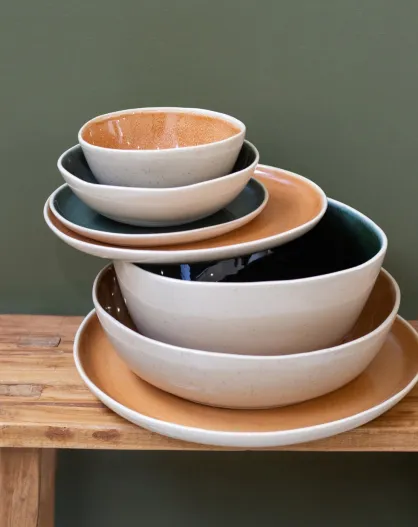 Juego de vajilla Coralia de porcelana naranja/verde de 30 piezas