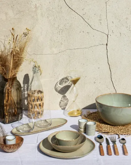 Juego de vajilla Dune de cerámica beige de 32 piezas