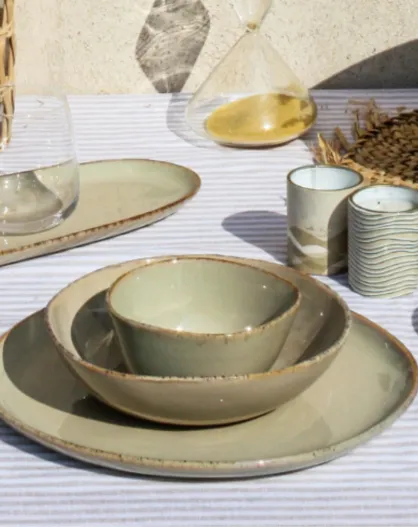 Juego de vajilla Dune de cerámica beige de 32 piezas