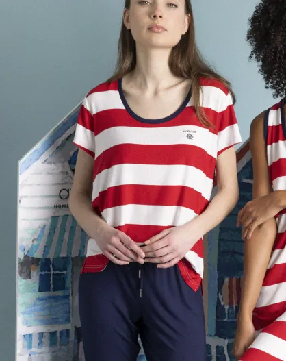 Pijama de manga corta, rojo y azul marino