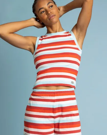 Pijama sin mangas a rayas multicolores