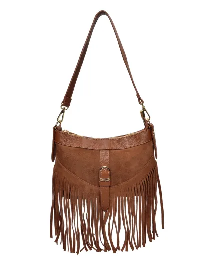 Bandolera de gamuza camel - 28x8x20 cm - Buen estado