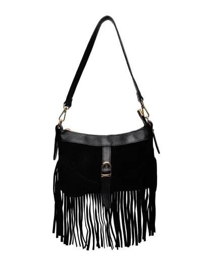 Bandolera Talia de piel negra - 16x21x8 cm