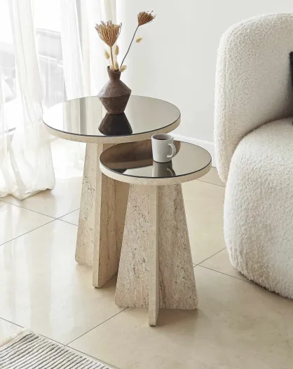 Set de 2 mesas auxiliares Luna de travertino - 40x50 cm