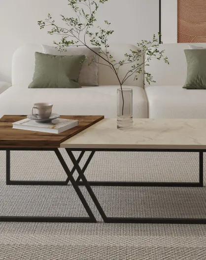 Fever - Set de 2 mesas de café de travertino beige