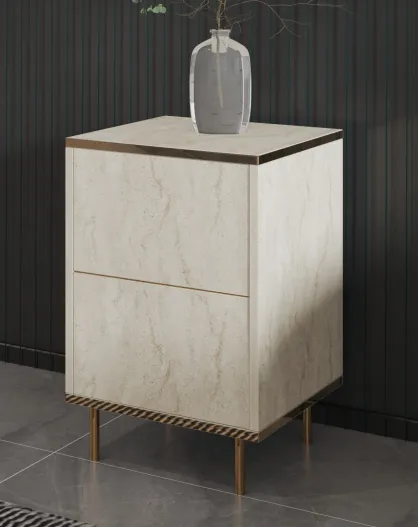 Mesita de noche Imaj travertin/dorado - 40x60x35 cm