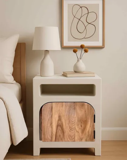 Mesita de noche Sit Holvik blanca, natural, 50 x 40 x 60 cm