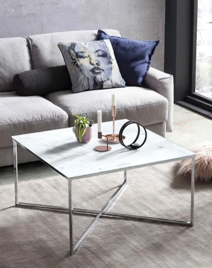 Fever - mesita blanca/cromada-80x80x45 cm