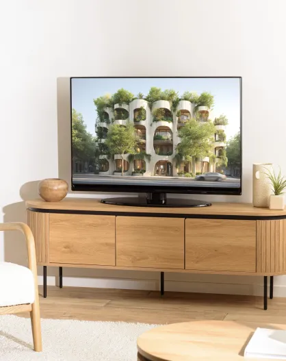 Mueble de TV redondo de 3 puertas natural - 160x40x55 cm