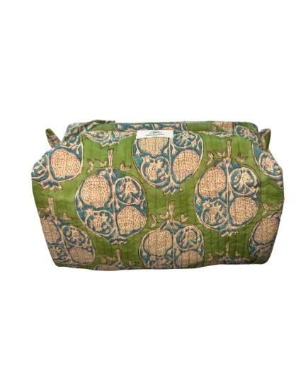 Neceser verde con estampado de bloques indios