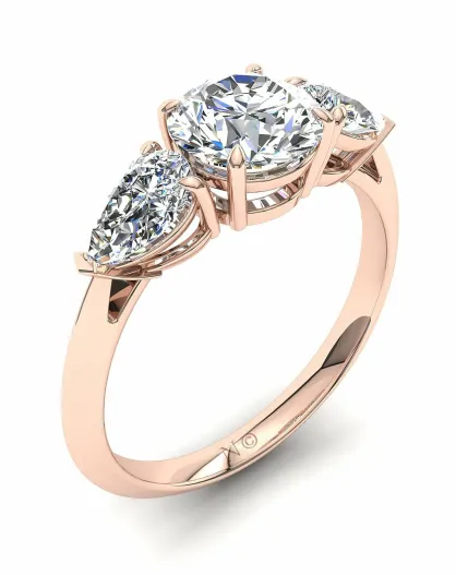Anillo redondo de diamantes sintéticos y diamantes sintéticos en forma de pera de 1.20 quilates en oro rosa