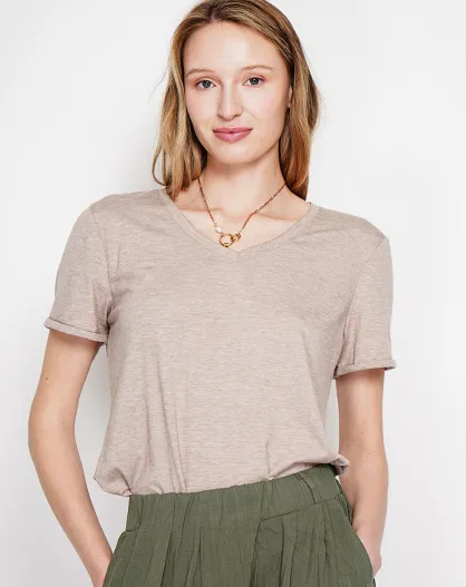 Camiseta Michèle con cuello en V en mezcla de lino beige