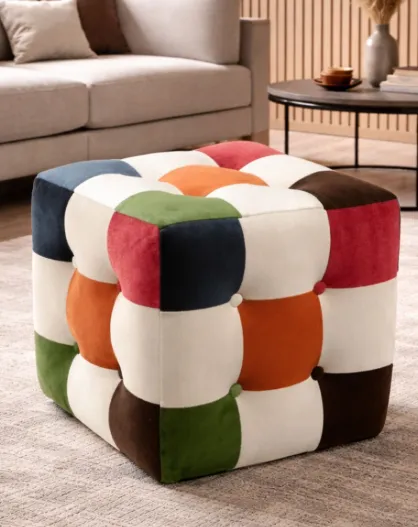 Otomana de patchwork multicolor - 42x42x42 cm