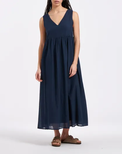 Vestido midi de voile de algodón azul marino Buffy
