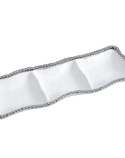 Plato para servir Salerno con 3 compartimentos, blanco y dorado, 38,1 x 13,3 x 3,2 cm