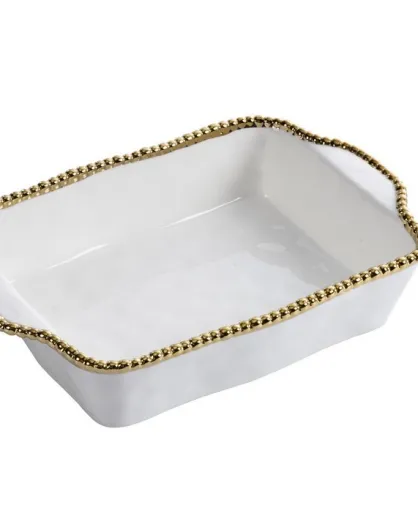 Fuente de horno rectangular Golden Salerno blanca y dorada, 22,9 x 27,9 x 7,6 cm