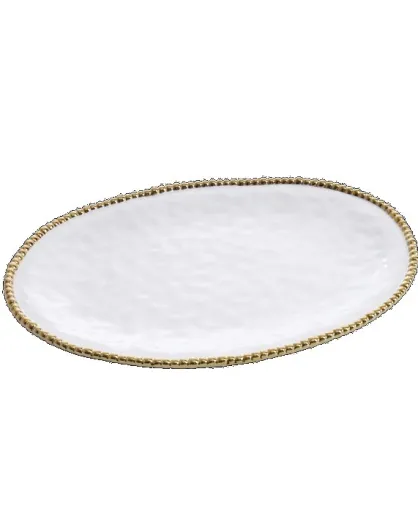 Plato ovalado grande Golden Salerno blanco y dorado - 47x33x3,8 cm