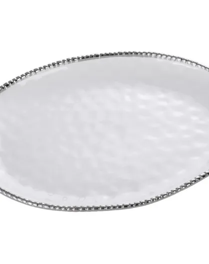 Plato ovalado blanco y dorado de Salerno, 47 x 35,6 x 5,1 cm