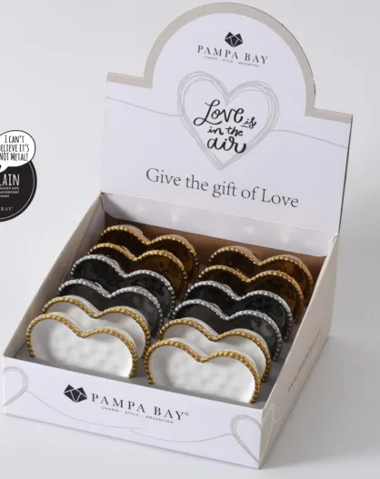 Caja CDU con 12 miniplatos en forma de corazón Love Is In The Air plateada