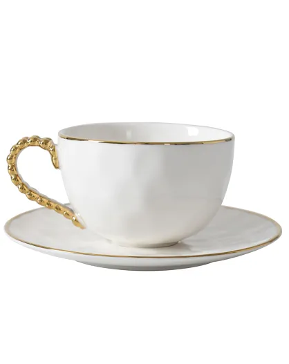 Taza y platillo de té blanco y dorado Golden Salerno