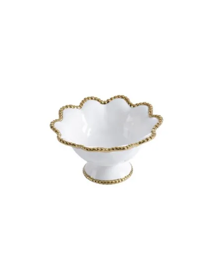 Cuenco dorado y blanco de Golden Salerno con soporte, 20,3 x 20,3 x 11,4 cm
