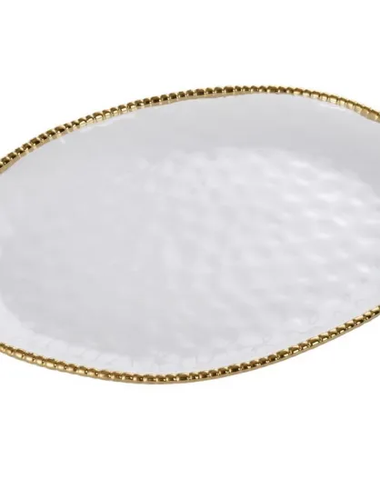 Plato ovalado dorado y blanco de Salerno dorado, 47 x 35,6 x 5,1 cm