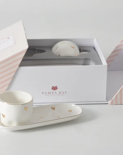 Juego de 2 tazas y platillos de espresso Heart To Heart, color blanco y dorado