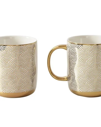 Juego de 2 tazas con lunares Get Gifty blancas y doradas, 8,9 x 8,9 x 10,8 cm
