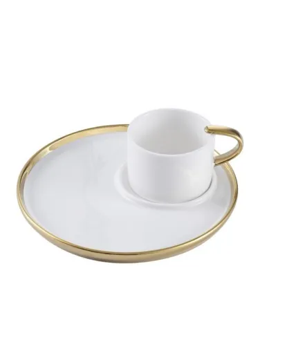 Taza y plato de capuchino blanco y dorado para amantes del café, 16,5 x 16,5 x 7,6 cm