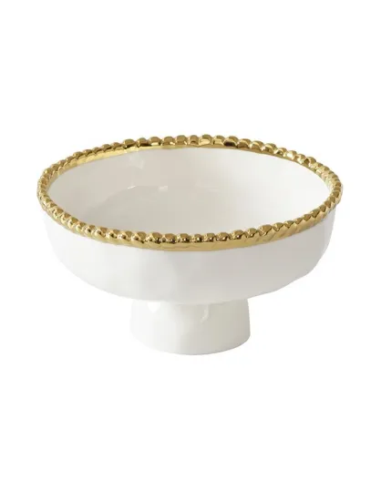 Cuenco pequeño con soporte Golden Salerno blanco y dorado - 15,2x15,2x8,3 cm