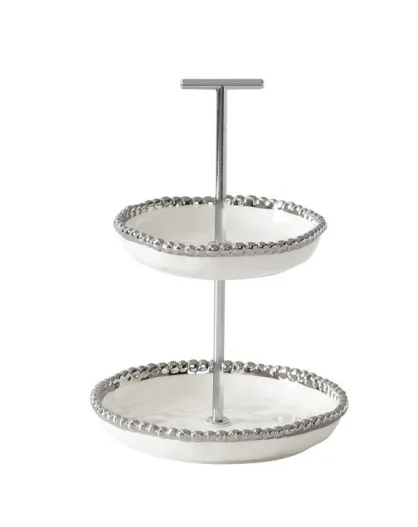 Minidisplay Salerno de 2 niveles, blanco y dorado, 15,2x15,2x22,9 cm