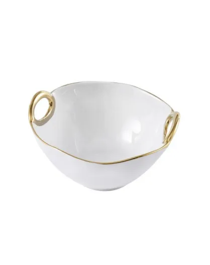 2 cuencos con asas doradas, blancos y dorados, 17,1 x 15,2 x 9,5 cm