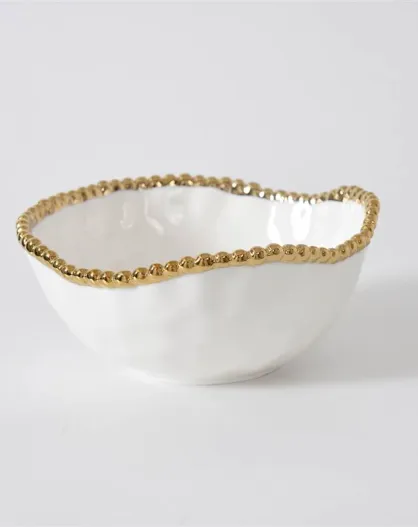 Tazón mediano blanco y dorado Golden Salerno