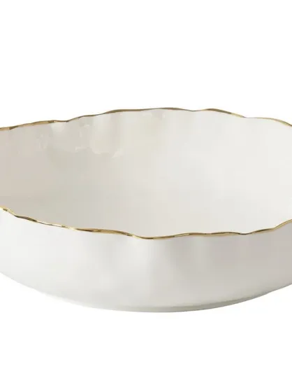 Cuenco Portofino muy grande, poco profundo, blanco y dorado, 38,1 x 38,1 x 7,6 cm