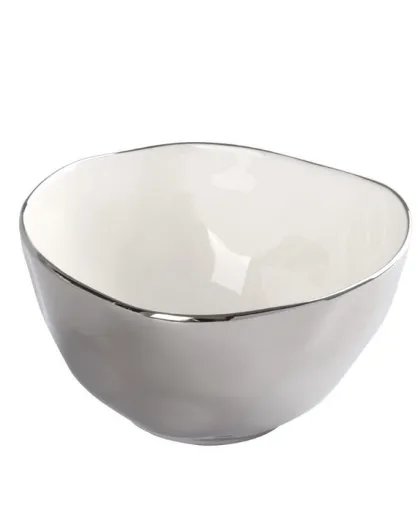 Cuenco grande, delgado y simple, plateado y blanco, 21,6 x 21,6 x 12,7 cm