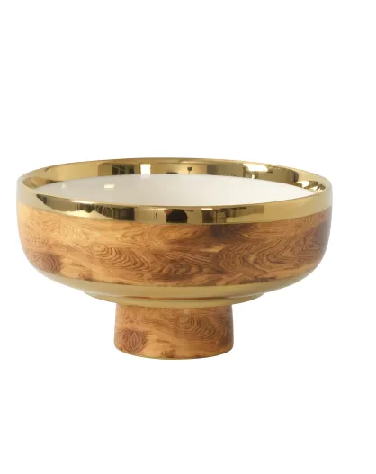 Cuenco pequeño de madera sobre soporte, madera blanca y dorada