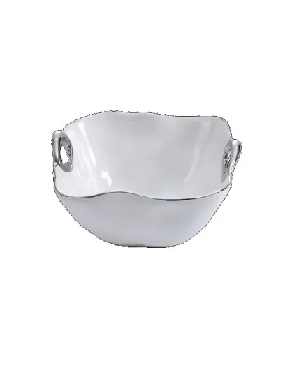 2 cuencos con mango pequeño con estilo blanco y dorado, 16,5 x 15,2 x 8,9 cm