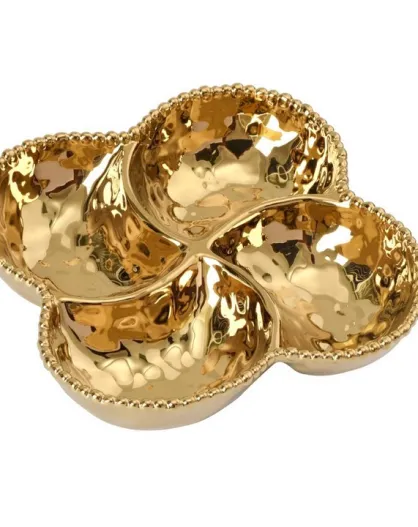 Cuenco Monaco con 4 compartimentos dorado, 22,9 x 22,9 x 5,1 cm