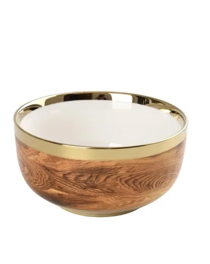 2 cuencos Madera blanca dorada - 22,2x22,2x10,2 cm